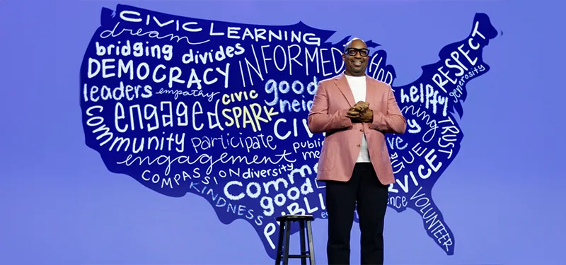 Harrison then showed a video of Ken Burns, Henry Louis Gates Jr. and others talking about their civic sparks.
